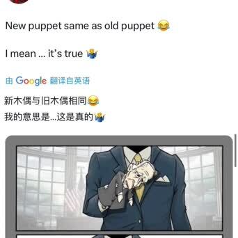 【用漫画嘲讽拜登与哈里斯后,马斯克被原作者声讨】已经彻底站队特朗普的埃隆·马斯克,继续讽刺民主党的拜登与哈里斯。马斯克写道:“新木偶与旧木偶相同😂我的意思是…这是真的🤷♂”此外,马斯克还发出了一幅讽刺漫画。文字加漫画,在2小时内被转帖2万次,点赞15万。